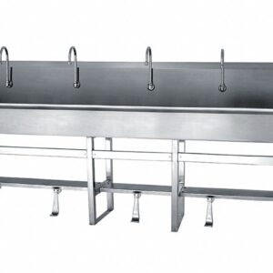 - Rửa tay: Các chậu rửa tay inox công nghiệp thường có thiết kế hố đơn giản, có thể tích hợp van đạp chân để đảm bảo vệ sinh
